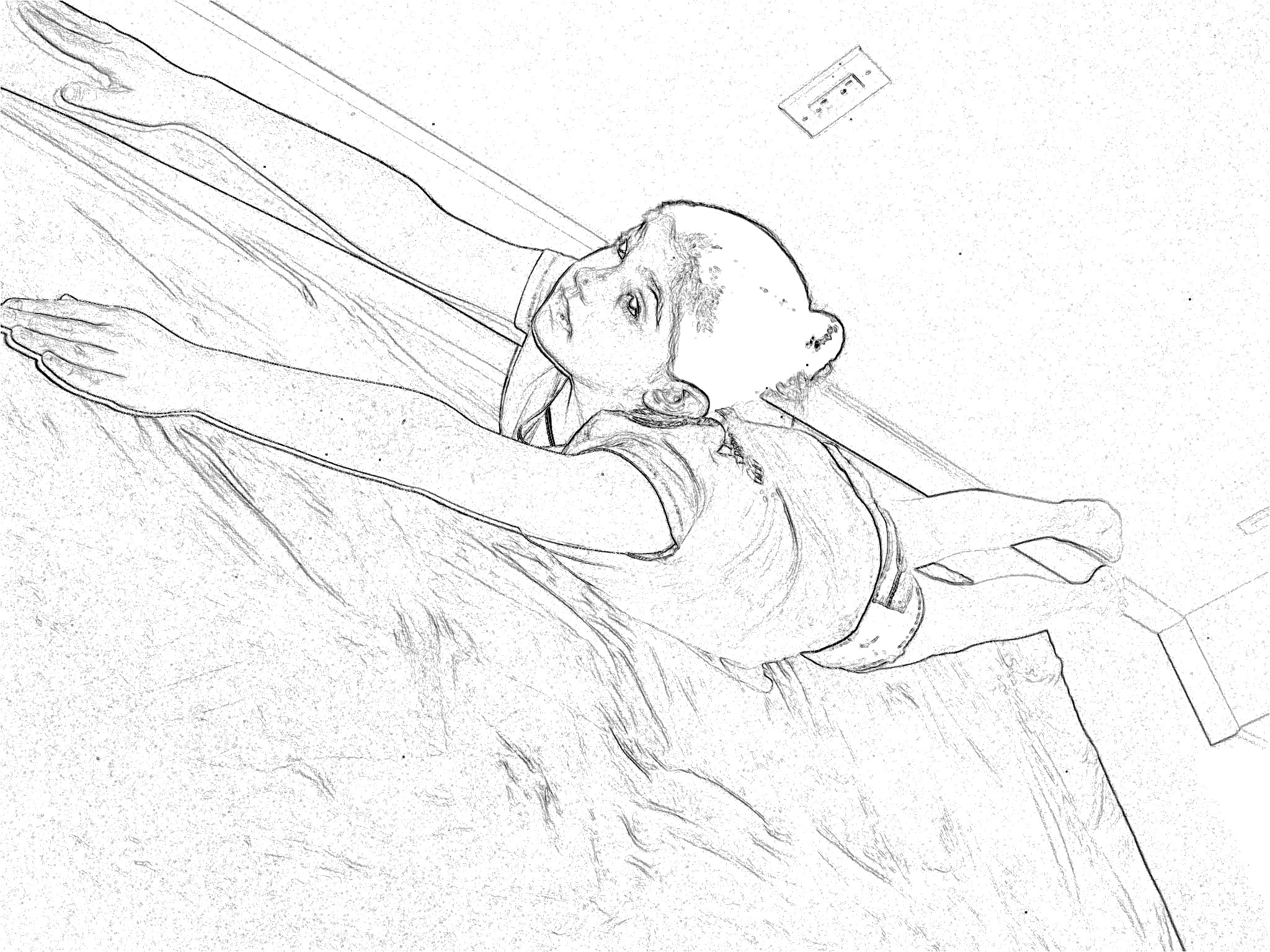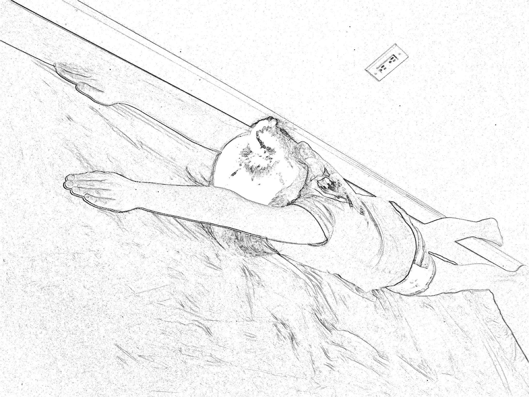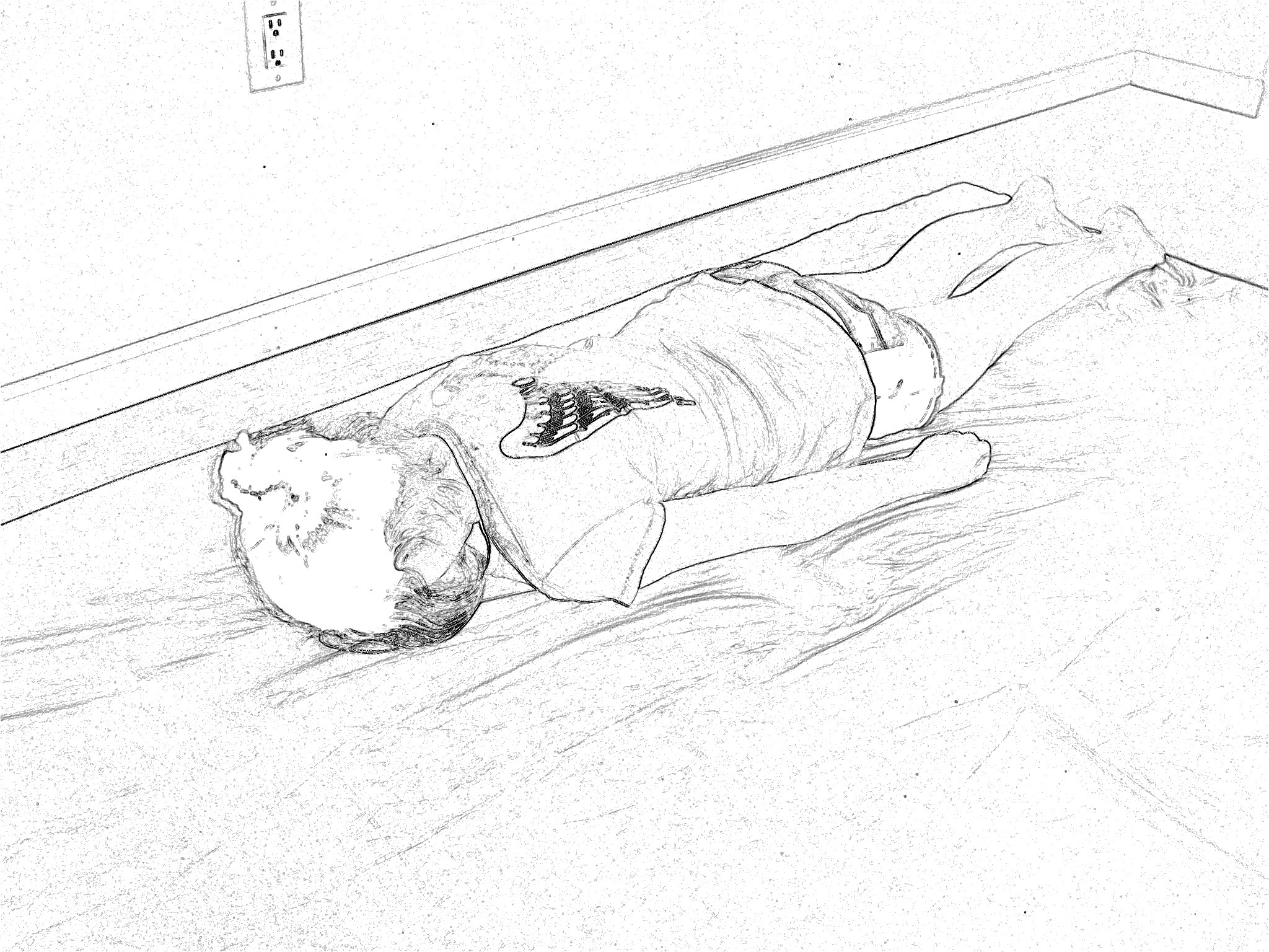 1. Lie on stomach with arms straight at the sides, legs straight and toes pointed. (Figure 1).